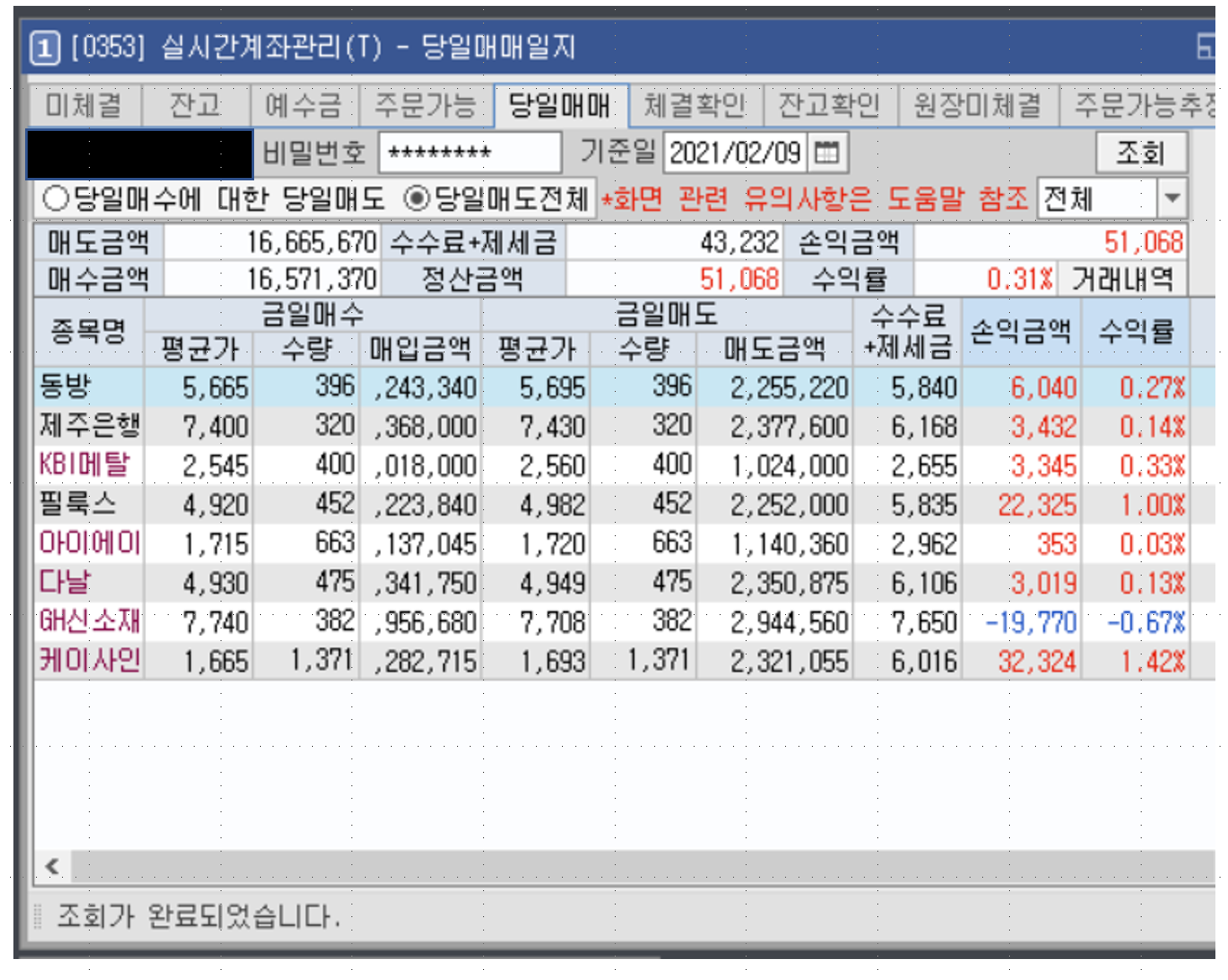 | [주린이 탈출기] 단타 매매 210216 (윈팩/파인테크/퓨처스트림네트웍스/레이크머티리얼/대덕전자) (0) | 2021.02.17 |