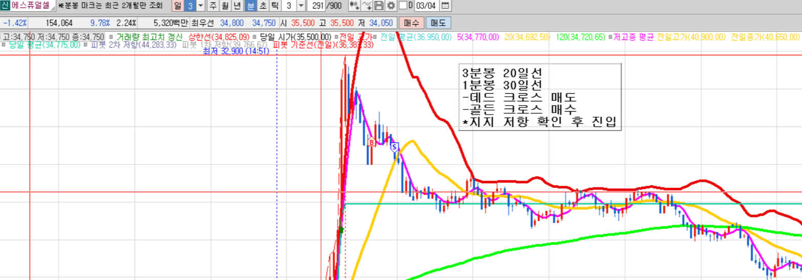 1. 장초반 급등 이후 당일 주가 평균선에서의 지지 확인