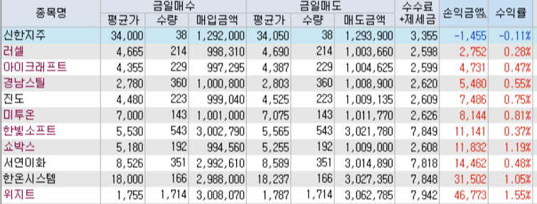 하기에 나와있는 종목은 이미 매수/매도가 끝난 종목으로 추천 종목이 아닙니다.