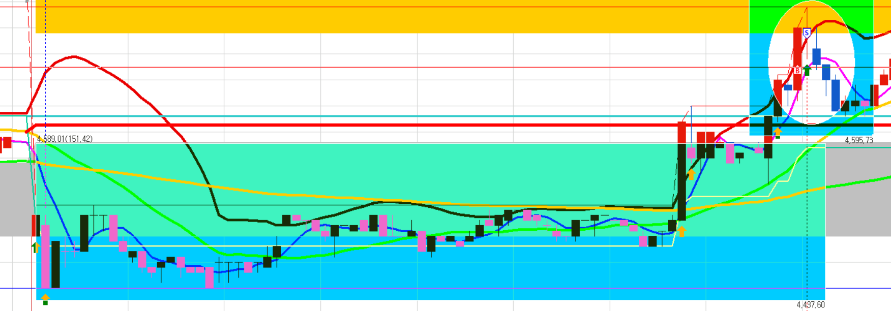2) 오후 1시 이후, 오전 슛팅 종목 대상 20선/30선 골든 크로스 슛팅 이후 눌림에서 매수