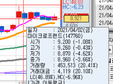 -1.08갭하락을 시작하고 약간의 반등을 하는듯 보이더니 바로 빠져 버렸습니다. 유일하게 하락 마감 종목입니다.