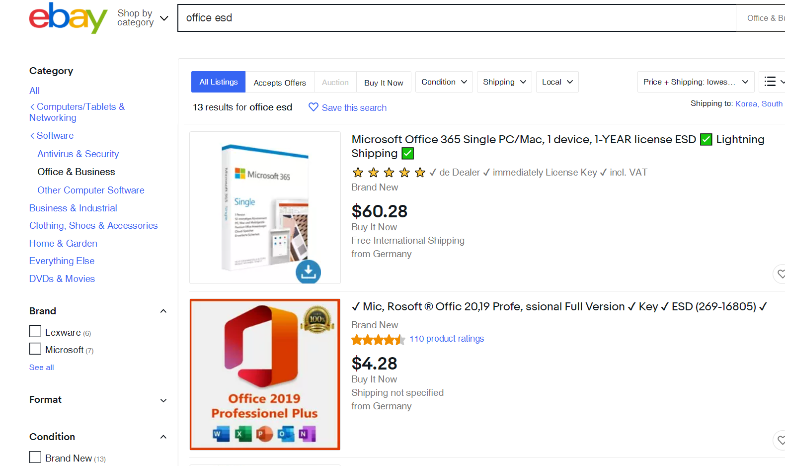 그래서 저도 이베이를 통해서 계정을 구입하고 오피스365(ESD)를 사용하고 있는데요.