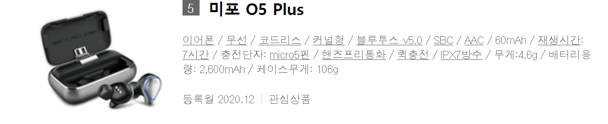 미포 05 Plus / O7 : 음질과 통화성능에 만족하며 사용하였으나 잔고장이 많음, 현재는 단종 상태