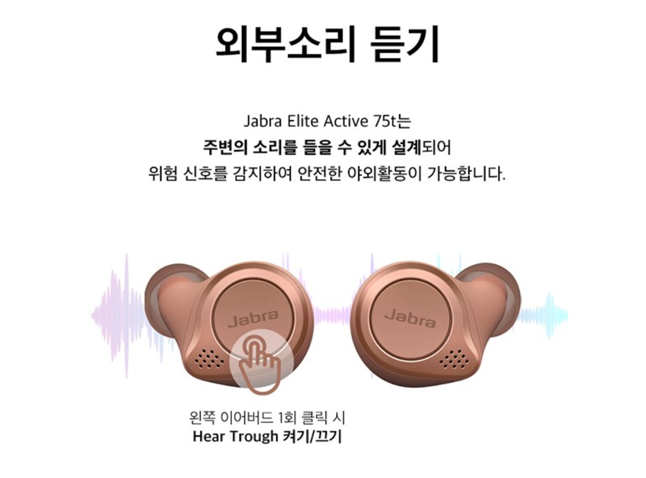 대표적 기능중에 Hear Trough(외부소리듣기)가 있는데 65T를 사용당시에는 듣고있던 음악을 중지하고 들어야만 잘 들렸었는데 75T 제품의 경우 음악을 듣고 있는 상태에서 아주 크게 음량을 설정한 경우가 아닌 이상은 외부의 소리가 또렷하게 들립니다.