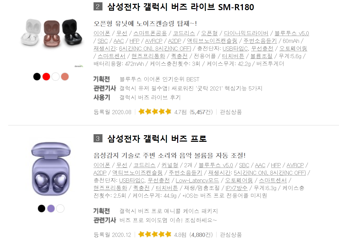 겔럭시 버즈 / 버즈 프로 : 휴대폰 구매 이벤트로 할인 된 가격으로 구매를 한다면 괜찮지만 제 돈주고 사는건...