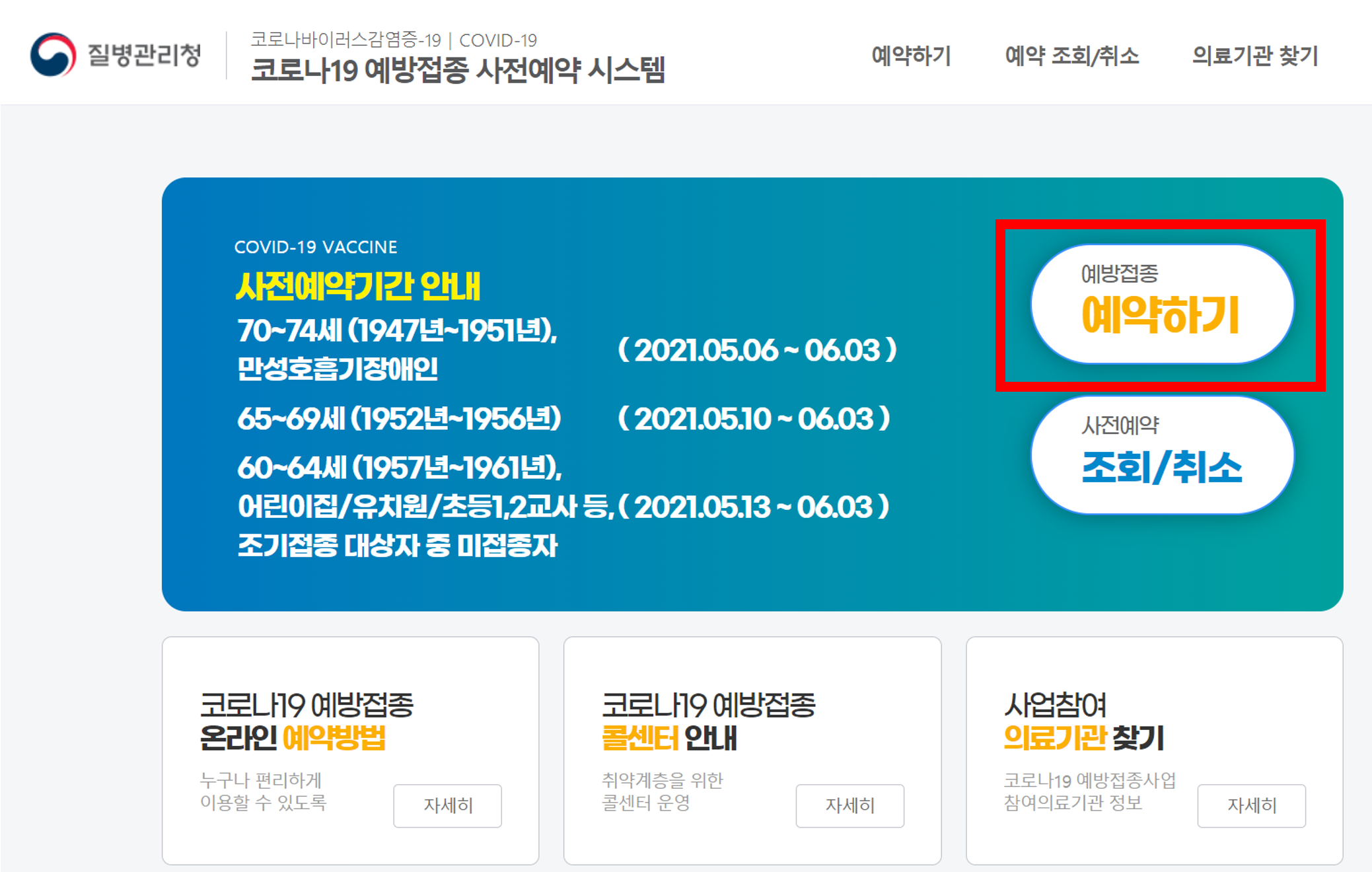 사전예약은 질병관리청의 사전예약 시스템 홈페이지 하단으로 접속 하시면 되구요.