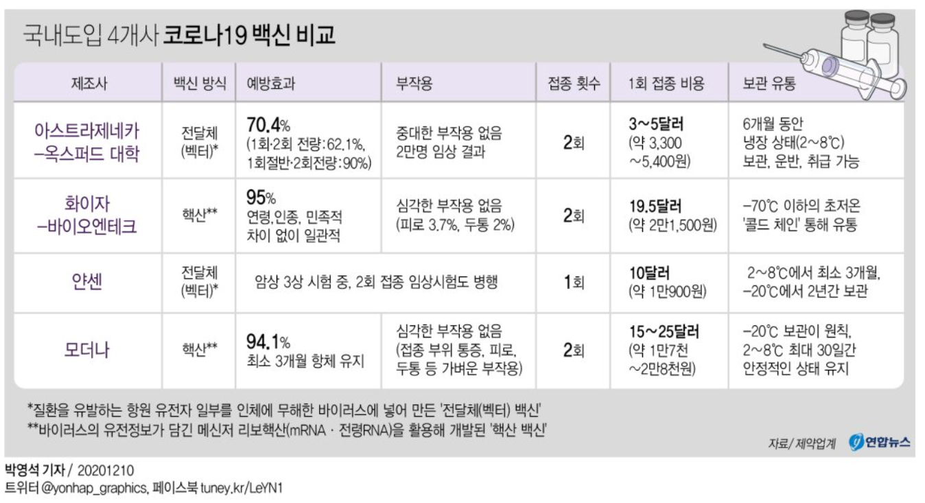 화이자 > 모더나 > 아스트라제네카 > 얀센